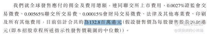 然后这个票招股书上按发售价范围的中位数29.05港元计算,公开的上市所有开支总额约为1.33亿港元,募资额约25.63亿港元,占比约5.18%,开支相比募资额算是比较少了。