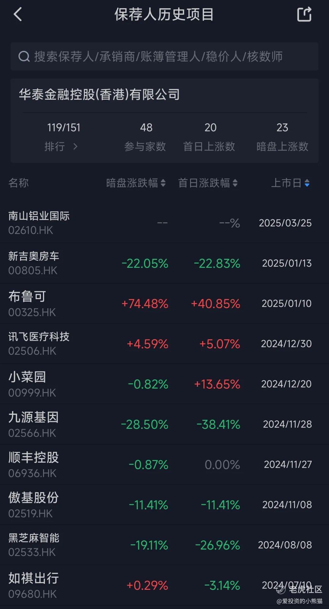 不过唯一诟病的就是这个华泰,以往大家经常说华泰保荐的不行,然后又拿出布鲁克举的反例。其实作为稳价人跟保荐人是不太一样的,保荐人的角色大盘股里面一般会有好几个,有些项目混一个次保荐,跟着主保荐人这边吃点肉也是可能的,布鲁克算是拯救了华泰保荐的口碑。