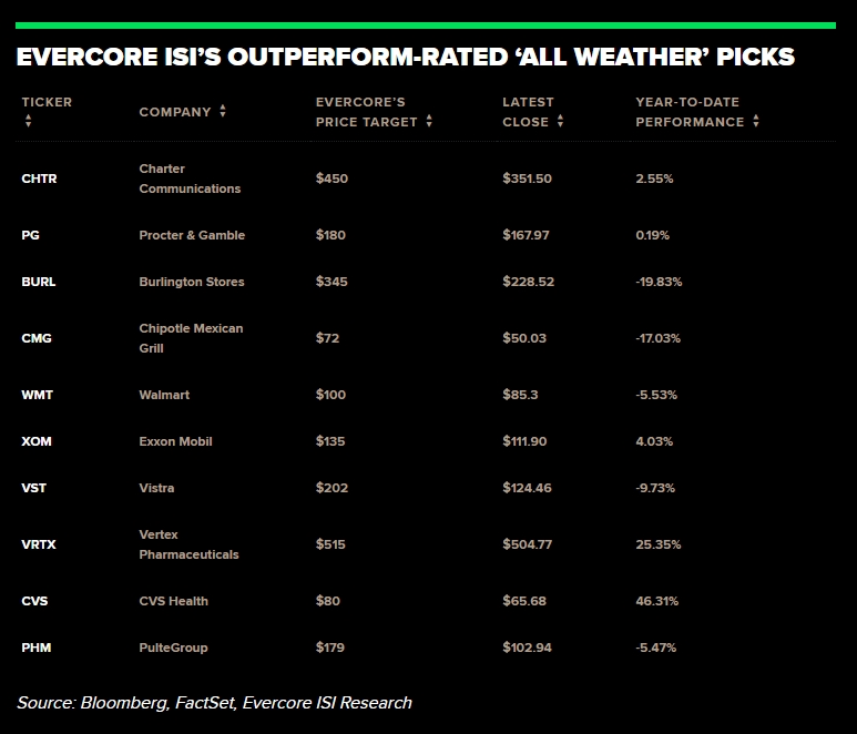 Evercore ISI为希望在未来一年持续动荡的市场环境中占据优势的投资者提供了一份全新的精选股票名单。
