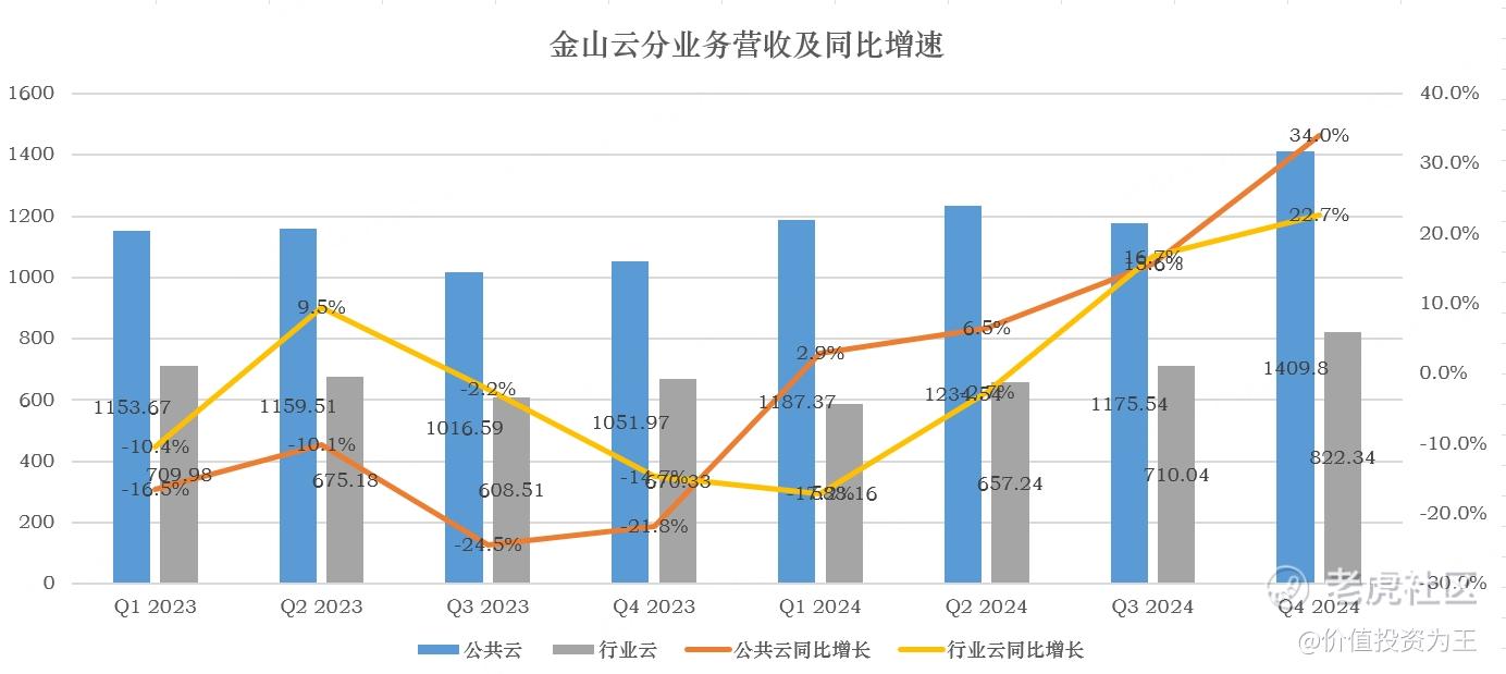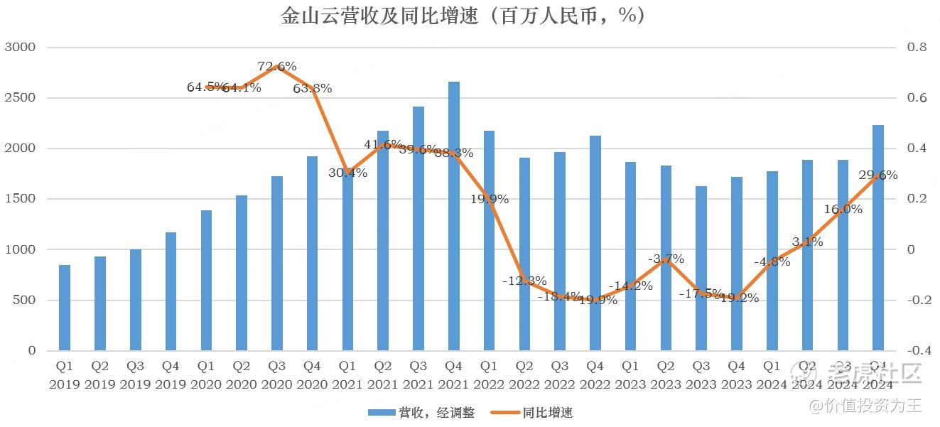 具体来看,金山云四季度营收22.3亿,同比增长29.6%,增速创2022年以来新高,超过分析师预期的21.2亿: