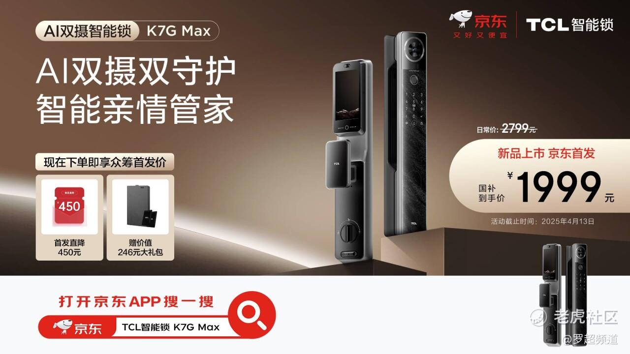 至此,AI+3D人脸猫眼锁的全新时代已由TCL智能锁领衔开启。3月20日年度旗舰新品K7G Max将登陆京东独家首发,首发价格2799元,现在打开京东APP搜TCL K7G Max智能锁,享新品众筹早鸟价立减到手仅需1999元,解锁未来生活新范式。