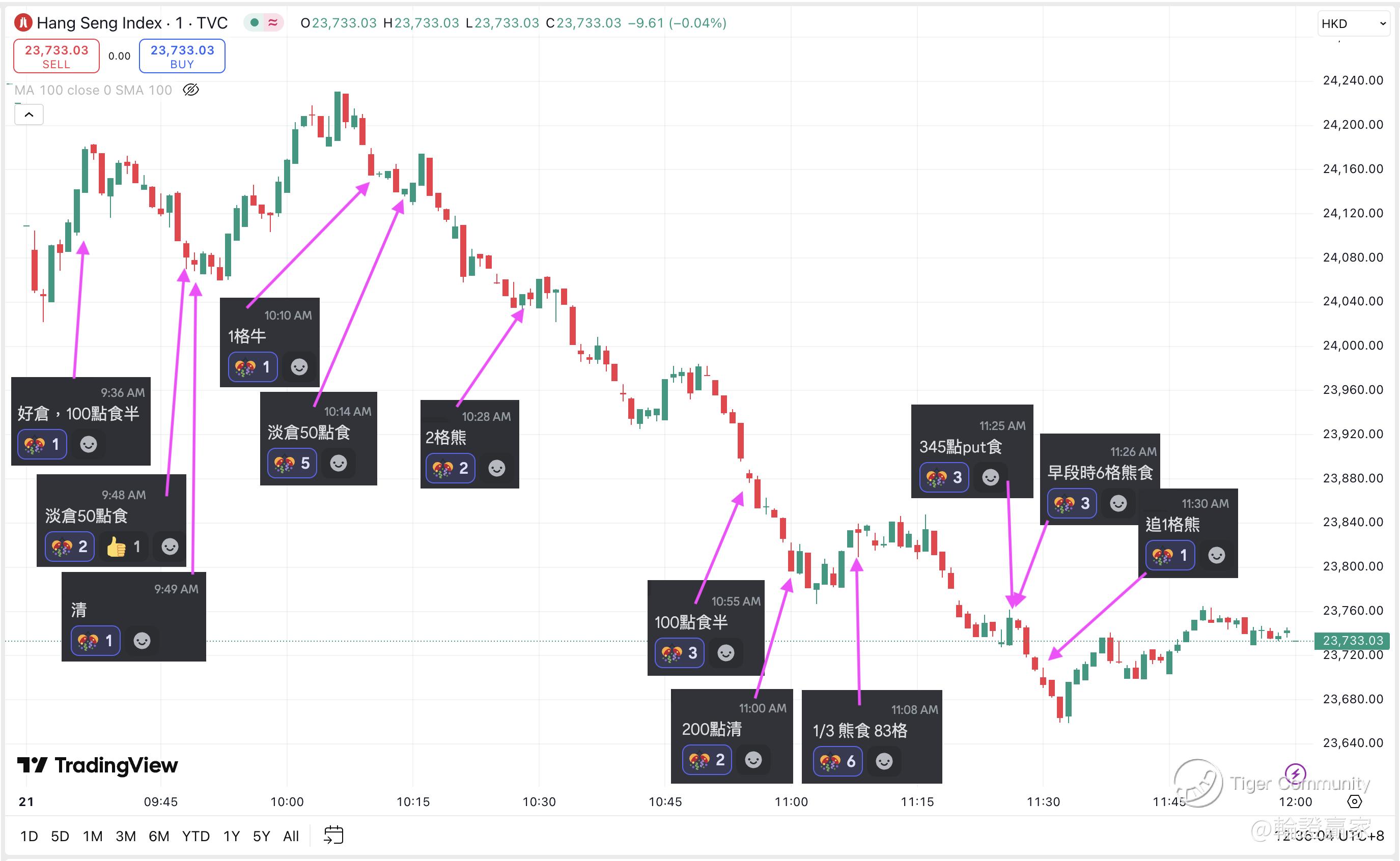 呢次落场又系无Set目标,因为纯綷系过线出淡仓向住啲近又重嘅牛证街货打过去,只系估唔到上半场指数低见23658点,两层有1300几张嘅期指街货全数被收回,同时恒指条20线都被佢队穿埋,作战室班友仔见到咁嘅盛世,都已经将手上嘅淡仓纷纷收割;下半场话之佢,总之收咗正数就系王。