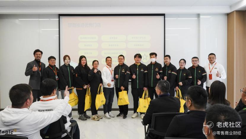 惜食魔法袋联合创始人孙国民、商务总监程龙、运营总监朱叶畅为10家优秀门店店长颁发纪念品
