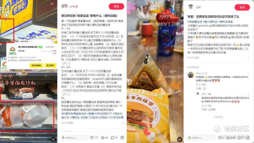 惜食魔法袋用户在社交平台上对于唐久便利的消费反馈