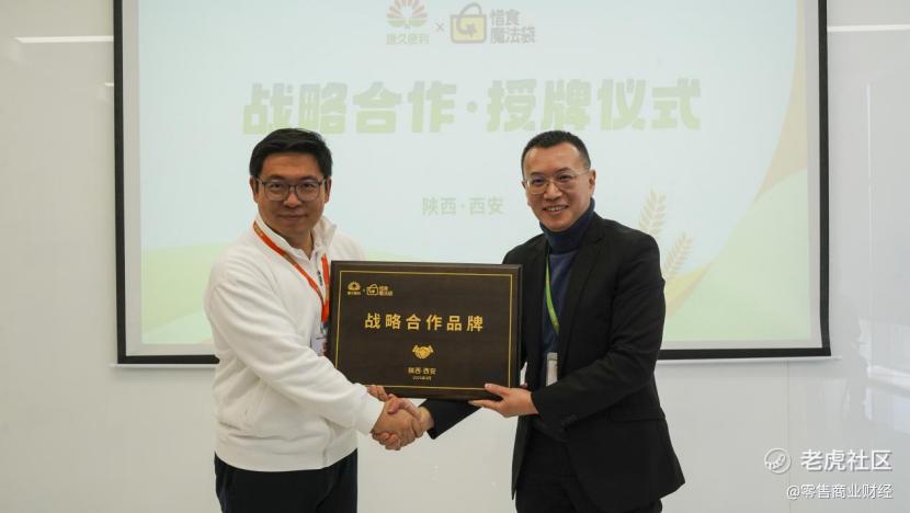 惜食魔法袋创始人徐伟昊(左)与西安唐久便利总经理李伟(右)