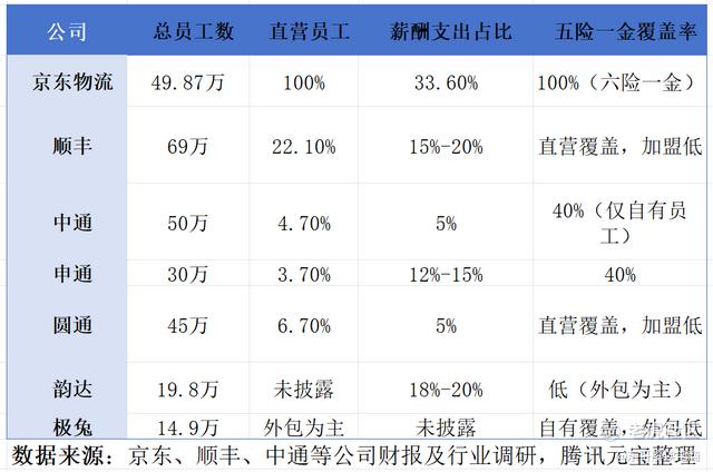 直营模式成本高。京东物流因全直营模式,薪酬支出占比超30%,但员工福利和稳定性显著优于加盟制企业。