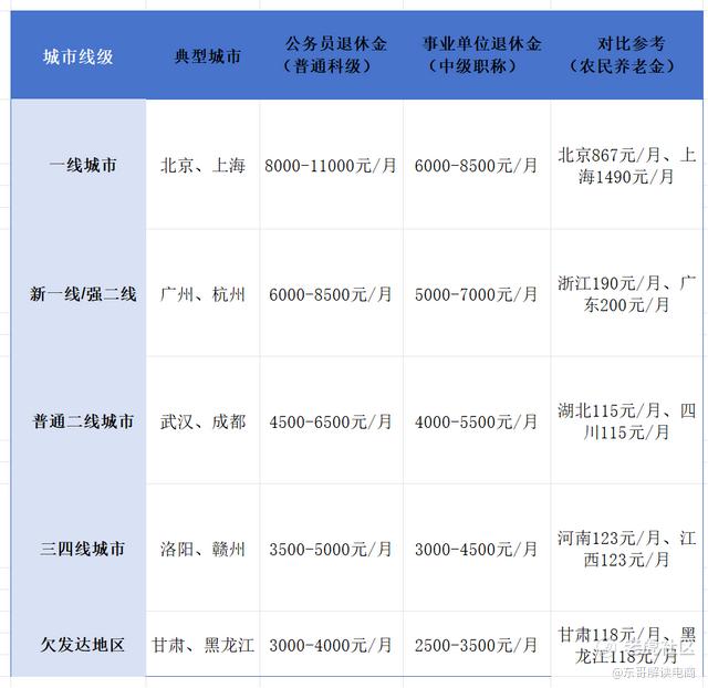 而且放眼全国,三四线普通科级公务员的退休金只有3500元到5000元一个月。
