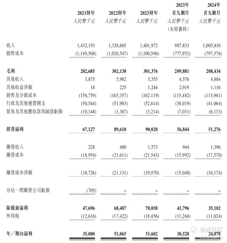 2021、2022年、2023年及2024年前三季度,江苏宏信的营收分别为14.3亿元、13.3亿元、14.0亿元、10.1亿元,2022年及2024年前三季度同比增长率分别为-7.2%、5.5%、1.8%。零售业务和批发业务为主要的收入来源,2024年前三季度占总收入的比重分别为41.6%、56.9%。2021年、2022年、2023年及2024年前三季度,宏信超市的毛利率分别为19.7%、22.7%、21.5%、21.4%,净利润分别为3,508.0万元、5,106.5万元、5,160.2万元、2,407.8万元,对应的净利率分别为2.4%、3.8%、3.7%、2.4%。