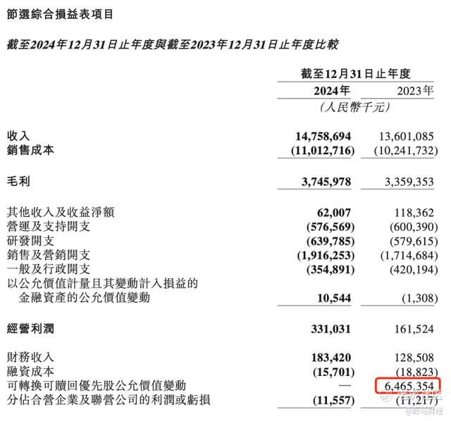 2023年公司年内利润包含了可转换可赎回优先股公允价值变动产生的64.7亿元账面收益,对此,途虎在年报中有所说明,该变动反映其于全球发售的一次性公允价值调整,目前途虎所有可转换可赎回优先股均已转换为A类股份,此后将不会产生与此相关的公允价值变动。