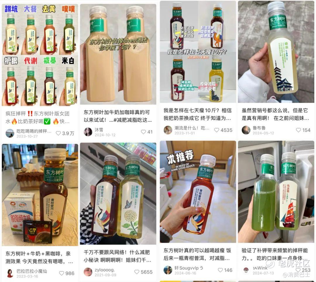 最新的风潮是营销号带出来的、有点“新中式养生”味儿的混搭喝法。如果你在网上搜“东方树叶减肥”或者“东方树叶掉秤”,会有很多声称能用东方树叶“N天瘦N斤”的秘诀,还有不少帖子安利着“魔改”配方,比如大餐前喝兑了咖啡的东方树叶能“管住嘴”,用东方树叶掺巴西莓粉能“去黄”,甚至用它加点蓝莓粉还能保护眼睛……十年前的“最难喝饮料”东方树叶,就这么有了自己的“东学”。