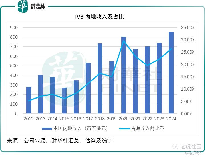 2024年全年,TVB收入按年微降1.95%,至32.58亿港元。其中香港电视广播收入按年增长17.25%,至16.38亿元,主要受到广告客户贡献的收入按年增长14.38%至14.64亿港元所带动;同时内地业务——包括TVB与优酷和腾讯视频合拍剧和在内地主要串流平台发行内容,以及在淘宝和抖音等线上平台带货直播收入等,于2024年的收入也按年增长16.84%,至8.51亿港元;稍微抵消了香港电子商务平台调整和缩减导致收入锐减的负面影响,后者的收入从2023年的4.86亿港元大幅下降至1.27亿港元。