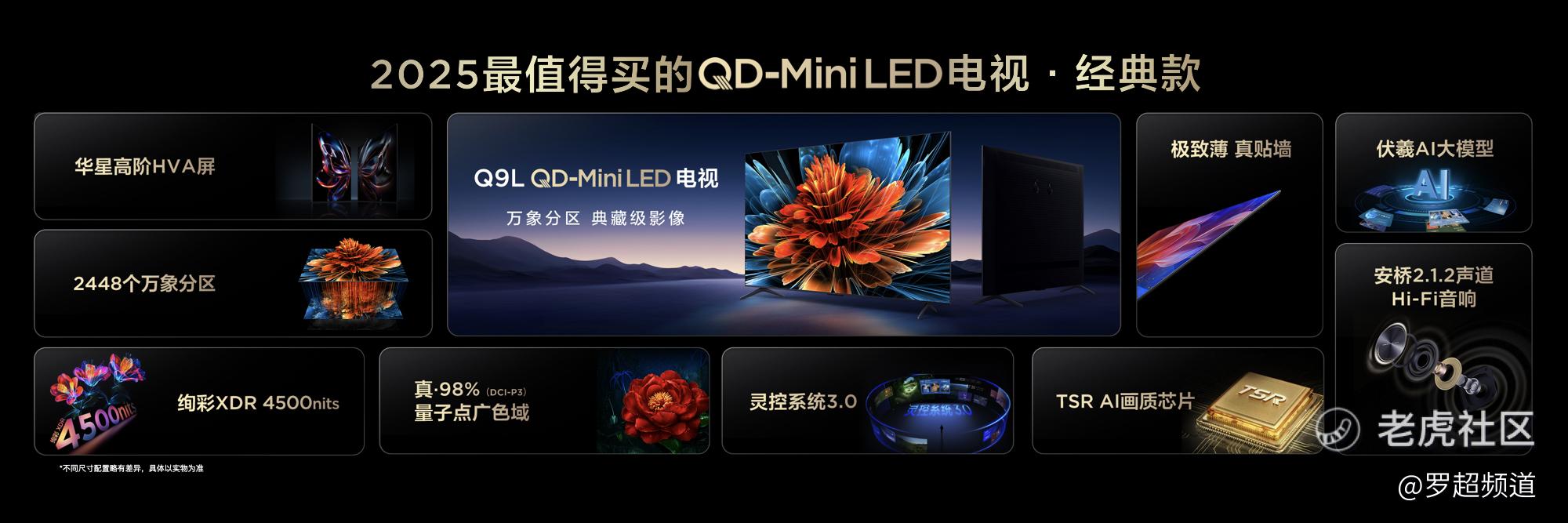 继先后发布“万象分区”、第四代液晶电视后,TCL在3月30日的“2025 TCL QD-Mini LED电视新品发布会”上,再度推出四款QD-Mini LED电视新品——T7L、T7L Pro、Q9L及Q9L Pro,覆盖55至98英寸主流尺寸,基于10大维度的技术升级,打造“2025年最能打”与“2025年最值得买”的标杆产品。