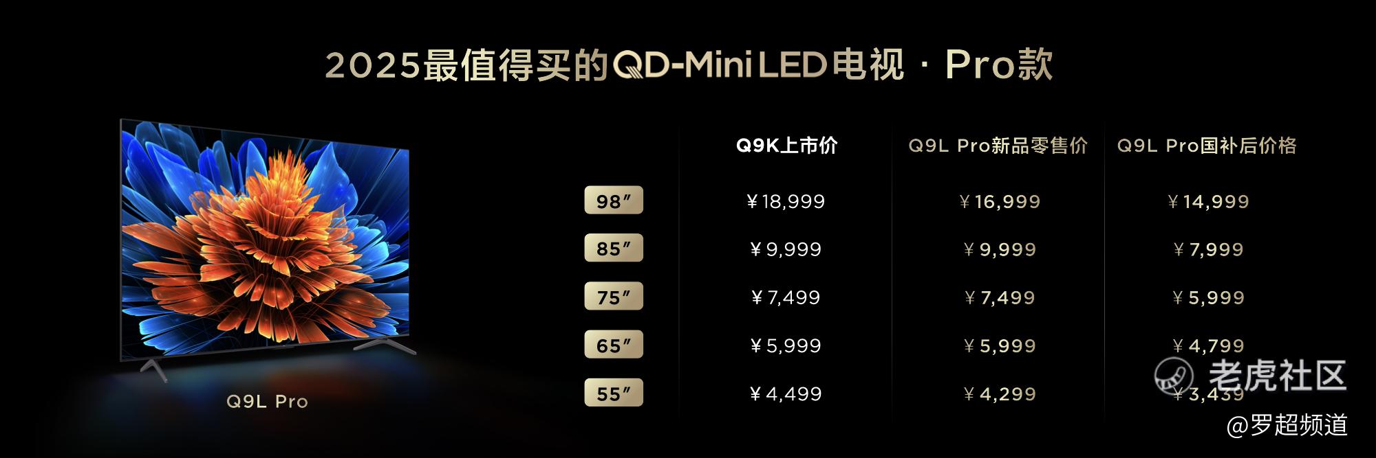 在国补后,TCL四款产品价格更低,其中TCL T7L 系列国补后预售价 2799 元起,T7L Pro 系列国补后 3839 元起,Q9L Pro 系列尺寸最大、配置最高的 98 吋机型叠加国补后售价不超过 15000 元,而价格最低的 55 吋 T7L 国补后仅 2799 元。对应国补后价格可上京东或官网查看。