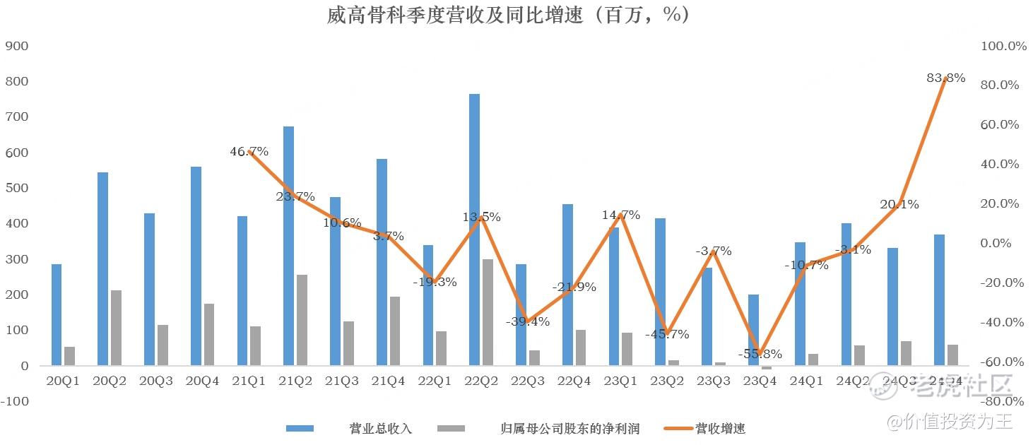 分季度来看,威高骨科去年四季度营收3.69亿,同比大增83.8%;净利润5946万,2023年同期亏损969万: