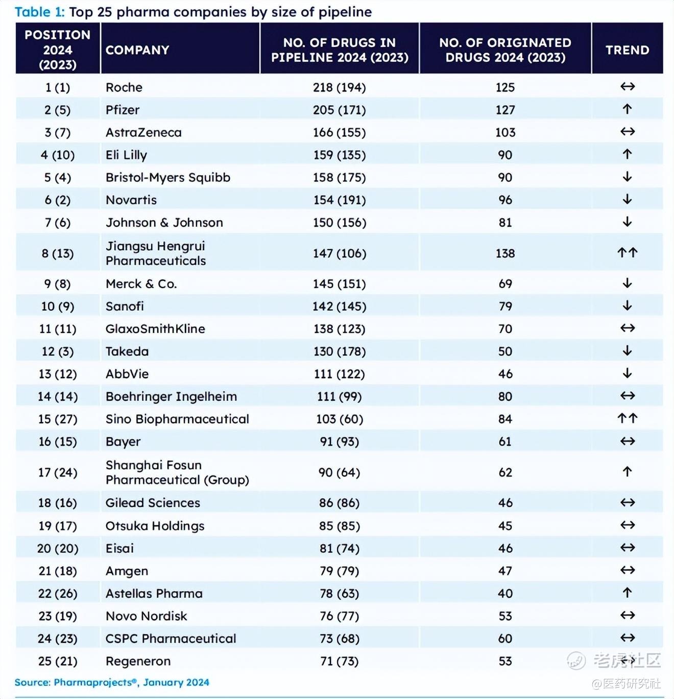 财报提到,在2024年国际知名咨询机构Citeline发布的“全球制药公司管线规模TOP25”榜单中,恒瑞医药位列第八。另外,根据弗若斯特沙利文资料,以2023年新分子实体创新药收入,及截至报告期末处于临床及更后期阶段的新分子实体在研创新药数量而言,恒瑞医药在中国制药企业中均名列前茅。