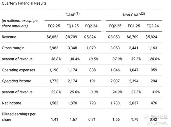 上图重点关注一下non-GAAP。收入同比增长从2024财年的低点反弹了38%,因为美光报告了80.5亿美元的收入,尽管由于移动销售下降和NAND价格下跌,环比增长转为负值。这些不利因素还导致毛利率环比大幅下降约160个基点,这引发了担忧,即内存周期可能并不像多头所希望的那样强劲。
