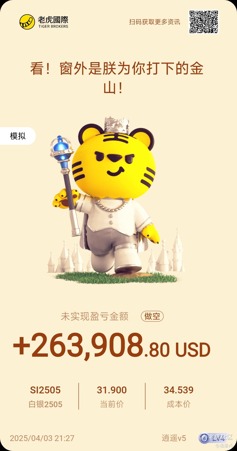 $白银2505(SI2505)$ 模拟,模拟,不太清楚为啥白银一工业金属非要跟涨黄金,唉,又是实盘暴跌。模拟暴涨的一天[流泪]