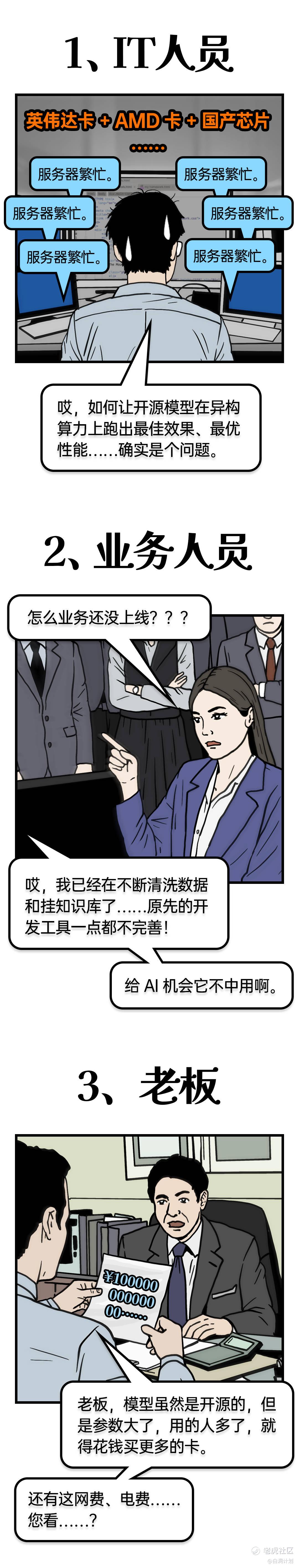 虽然模型开源降低了门槛,但与自己业务结合时,未必就能达到理想的效果。许多企业人员,依旧面临着诸多挑战——如IT人员、业务人员和老板们,就都纷纷有着各自的问题。