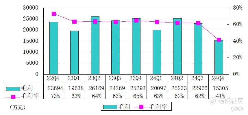 新氧2024年第四季度毛利为1.53亿元,毛利率为41%,较上年同期的65%下降24个百分点。