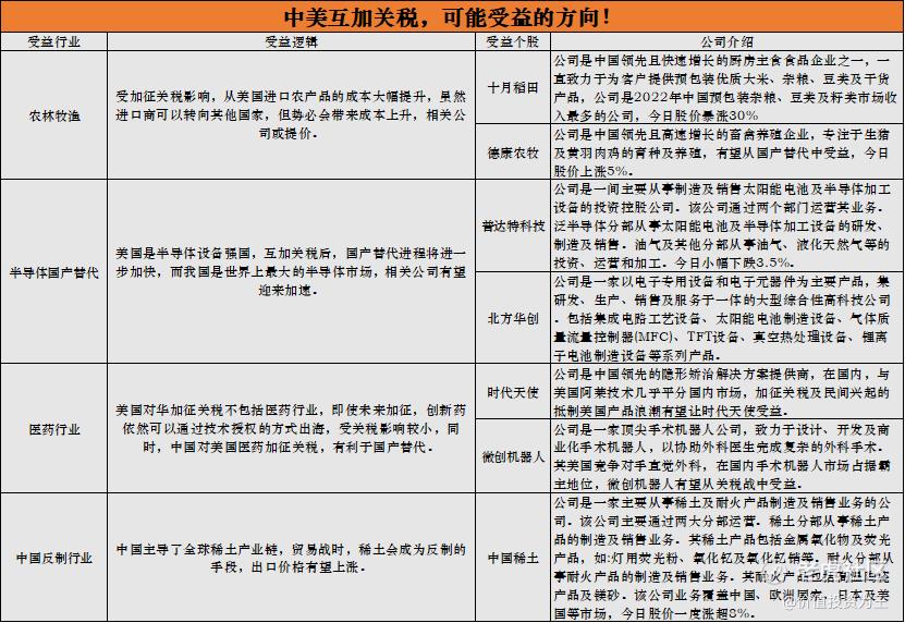 受益逻辑:美国对华加征关税不包括医药行业,即使未来加征,创新药依然可以通过技术授权的方式出海,受关税影响较小,同时,中国对美国医药加征关税,有利于国产替代。