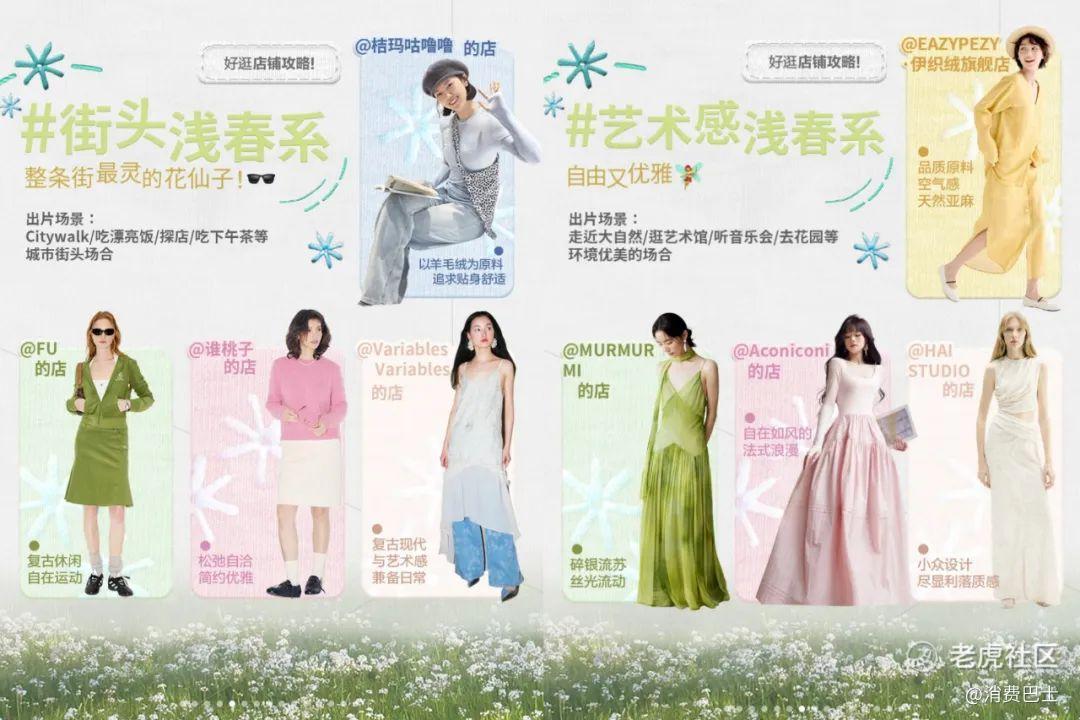 与“巴恩风”主推夹克不同,“浅春系”涉及的单品和颜色都变多了,还细分出了“街头浅春系”“艺术感浅春系”等不同穿搭场景,能参与进的商家和买手也因此更多。