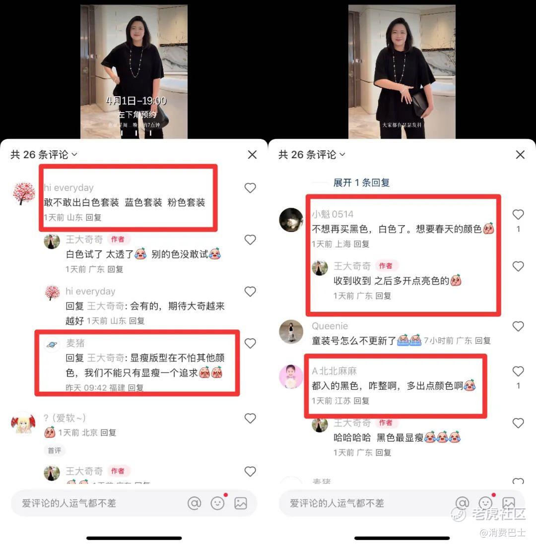 王大奇奇原本给“Rose&molly”的一款针织开衫做了黑白两种颜色,但有用户在小红书直播时反馈,黑白两色太单调,希望有更适合春天的颜色。于是在直播间,她拿着毛织制品试色的方片,一个个放到自己脸旁做对比,让用户当场选,最终大家一起选定了“浅春系”里流行的浅粉色和浅蓝色。