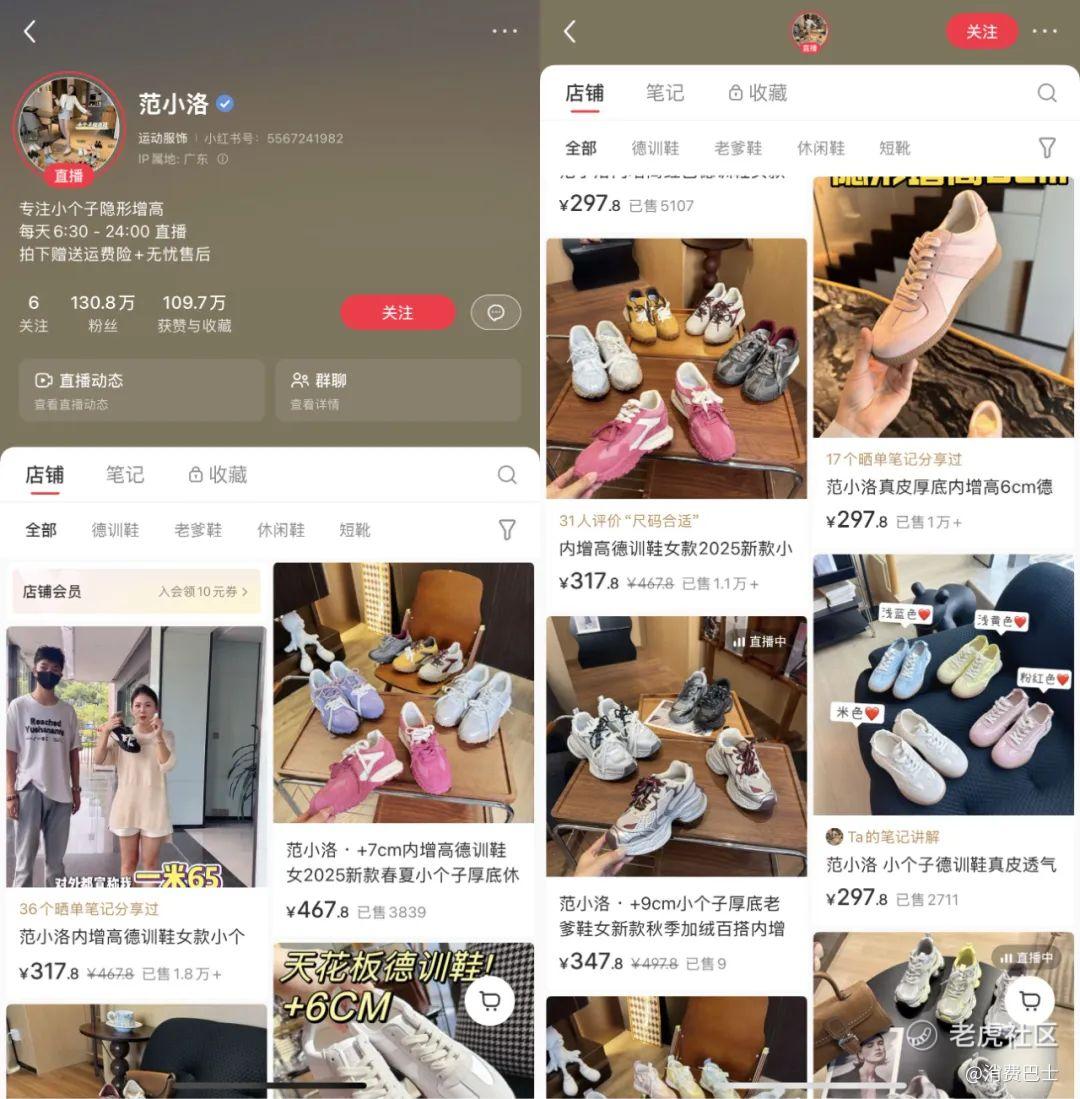 “范小洛”开始把自己定位为专门给小个子做时尚隐形增高鞋的品牌。由于是最早开辟这个小众赛道的商家,它一开始就盈利,单场直播GMV从1万慢慢长到30万。如今“范小洛”在小红书上每个月的月销能达到千万,也就是说三个月就能做到过去一年的销售额。
