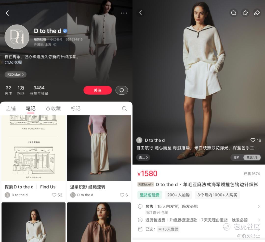 在见证了太多同行倒闭、坚信要做高品质和细分化后,Dora把自己的品牌“D to the D”定位于给年轻群体提供更有设计感的羊绒针织产品。她在这个春天收到用户反馈,希望她上线有海军领的针织衫。在小红书的新春新趋势里,海军领所属的“航海系”不仅特别适配小个子人群,还能让消费者兼顾通勤和度假。今年3月,“D to the D”根据反馈上线海军领针织衫,这款单品的GMV如今已经达到了200多万。