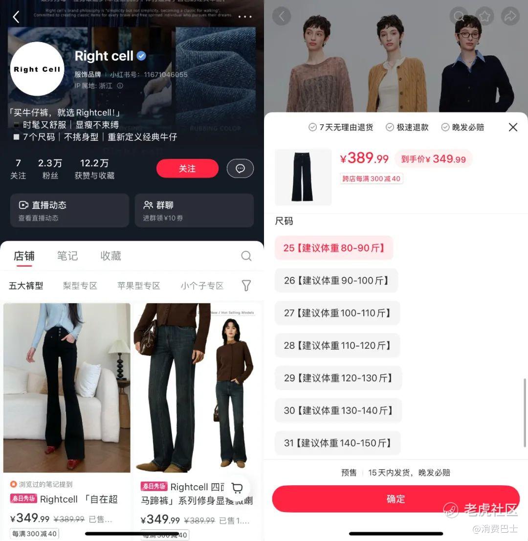 小红书99后主理人刺猬在创立“Rightcell”前就发现,女装商家品质参差不齐,是行业退货率高的原因之一。以牛仔裤为例,定价100多元的产品最好卖,甚至有产品成本十几元、定价四五十,销量还特别高。
