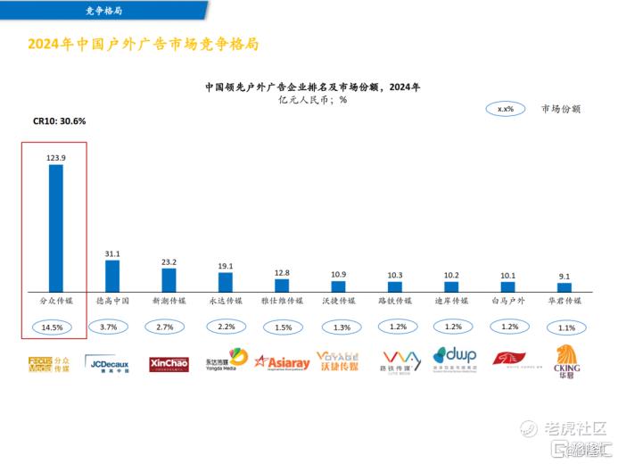 据中国广告协会测算,2024年中国户外广告市场中,分众传媒以123.9亿元占比约14.5%,新潮传媒以23.2亿元占比约2.7%。市场分析认为,此次并购也将促进分众传媒集中发挥户外媒体价值优势,优化产业格局,引领高质量可持续发展,打造共建、共生、共赢的广告行业新生态。