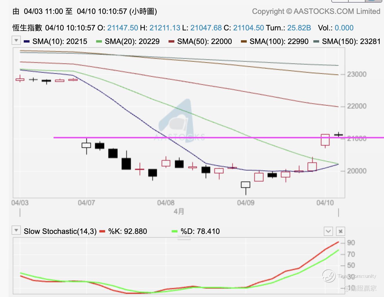 依家咁嘅市真系食住花生睇戏比较安全,㖊晚再嚟多单新闻出嚟话美国向中国以外嘅各国征收关税单嘢暂缓90日,隔晚美股升返3000几,而依家恒指准备开市之前,隔离啲日经、南韩都升返唔少。恒指开市升逾500点,及至正式开市之后升幅有见略为扩阔,战友们纷纷出好仓追指数向上,先用星期一(4月7日)大裂口底部(21047点)作为上方量度线。