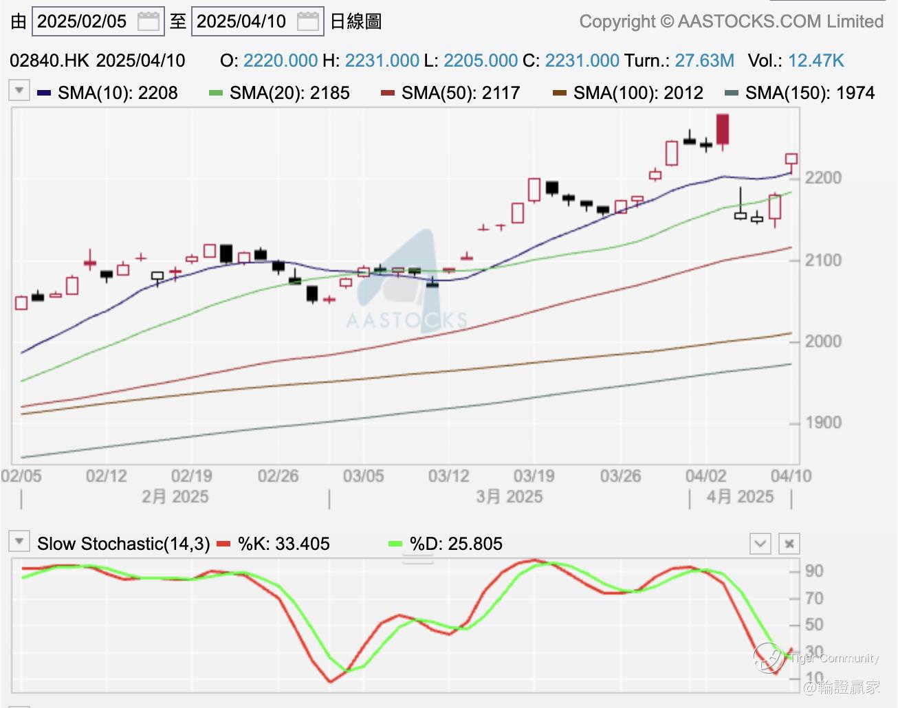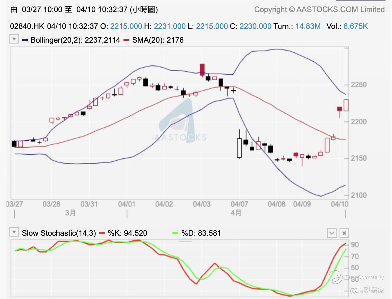 其实金价之前都有落过一浸,简单啲用 $SPDR Gold Trust(02840)$ 嚟追只金的话,今日见2840嘅单位格价率先企返上日线图10线之上。