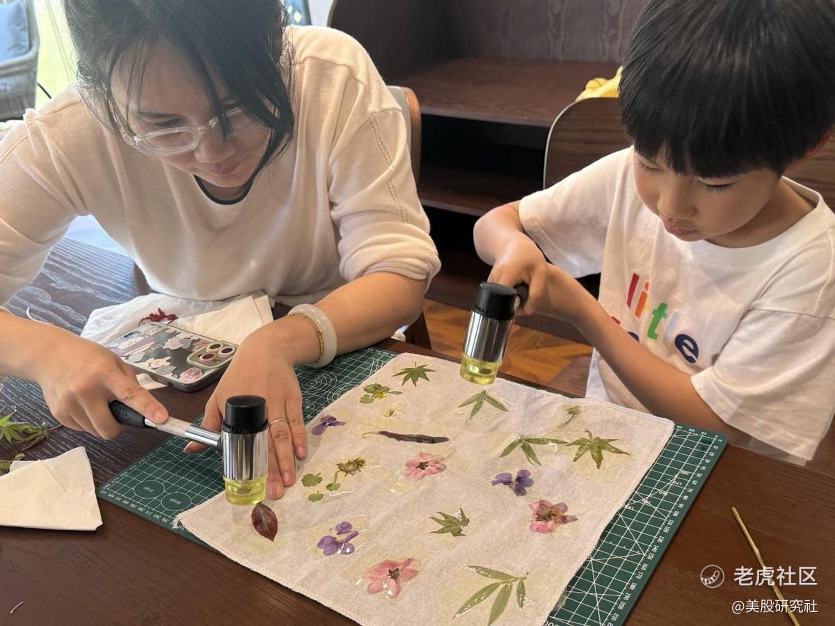 盐城黄海森林花间亭·静林则推出了植物拓印活动,满足清明节亲子客群需求。通过敲打或按压植物,把形态、纹理和天然色素转移到手绢上,形成独特的自然图案,客人能通过拓印认识10余种植物,感受自然之美。