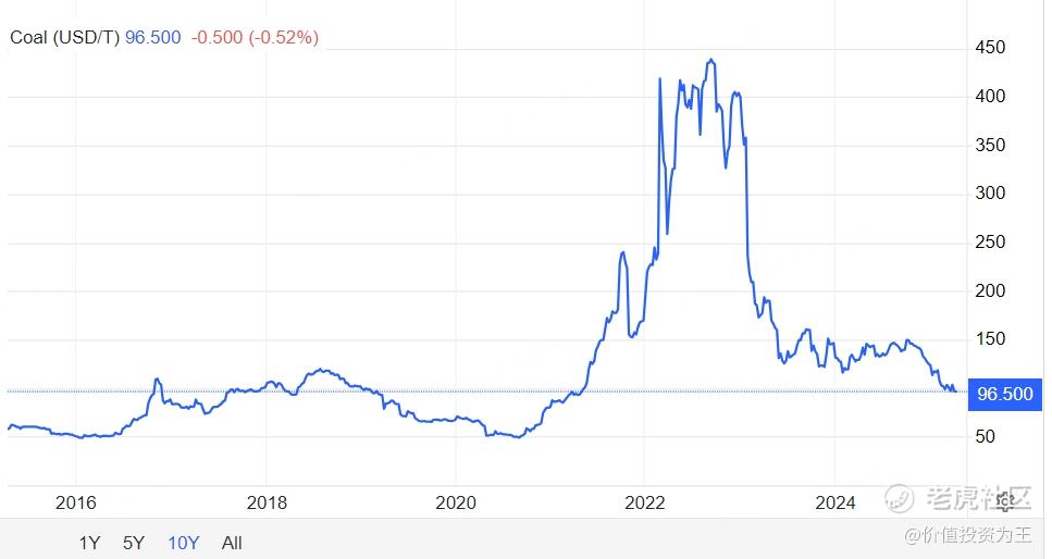 但是,疫情过后,供应链恢复正常,煤炭价格逐步走低,如今只有96.5美元/吨!