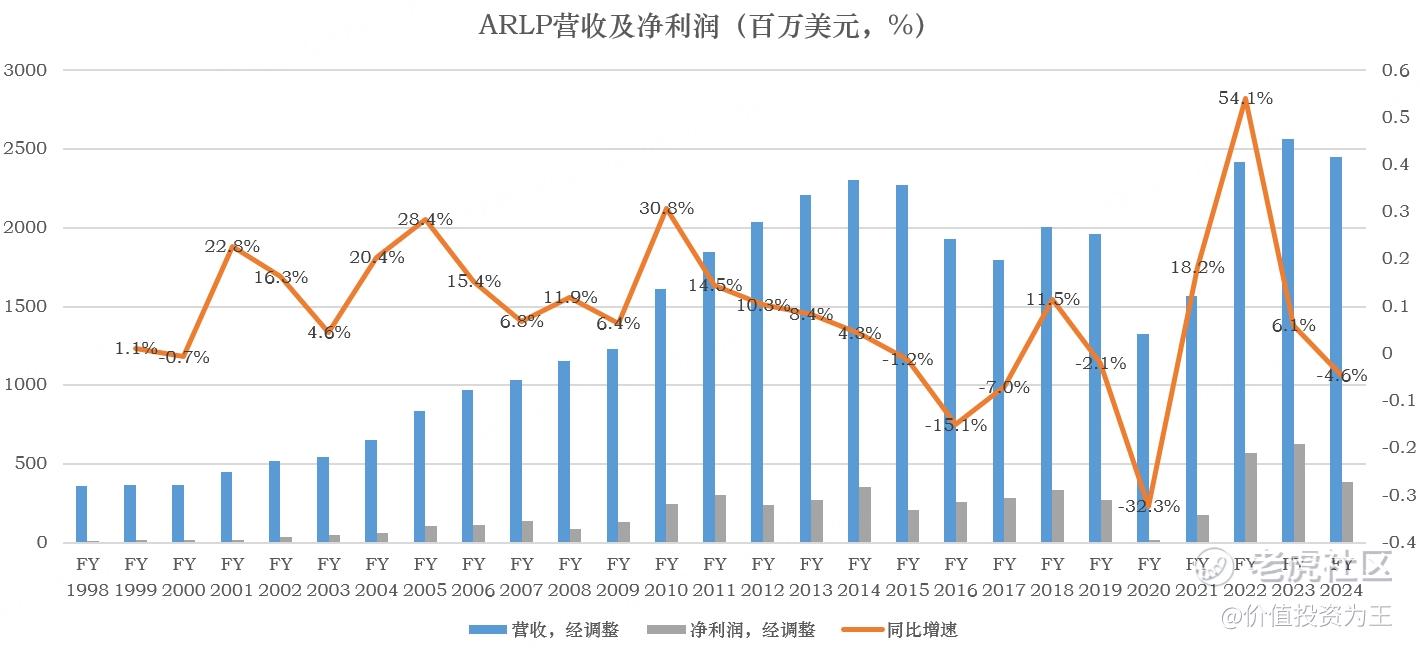 价格飙升下,ARLP的营收和净利润创出历史新高: