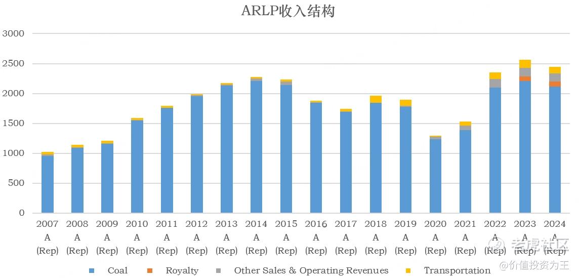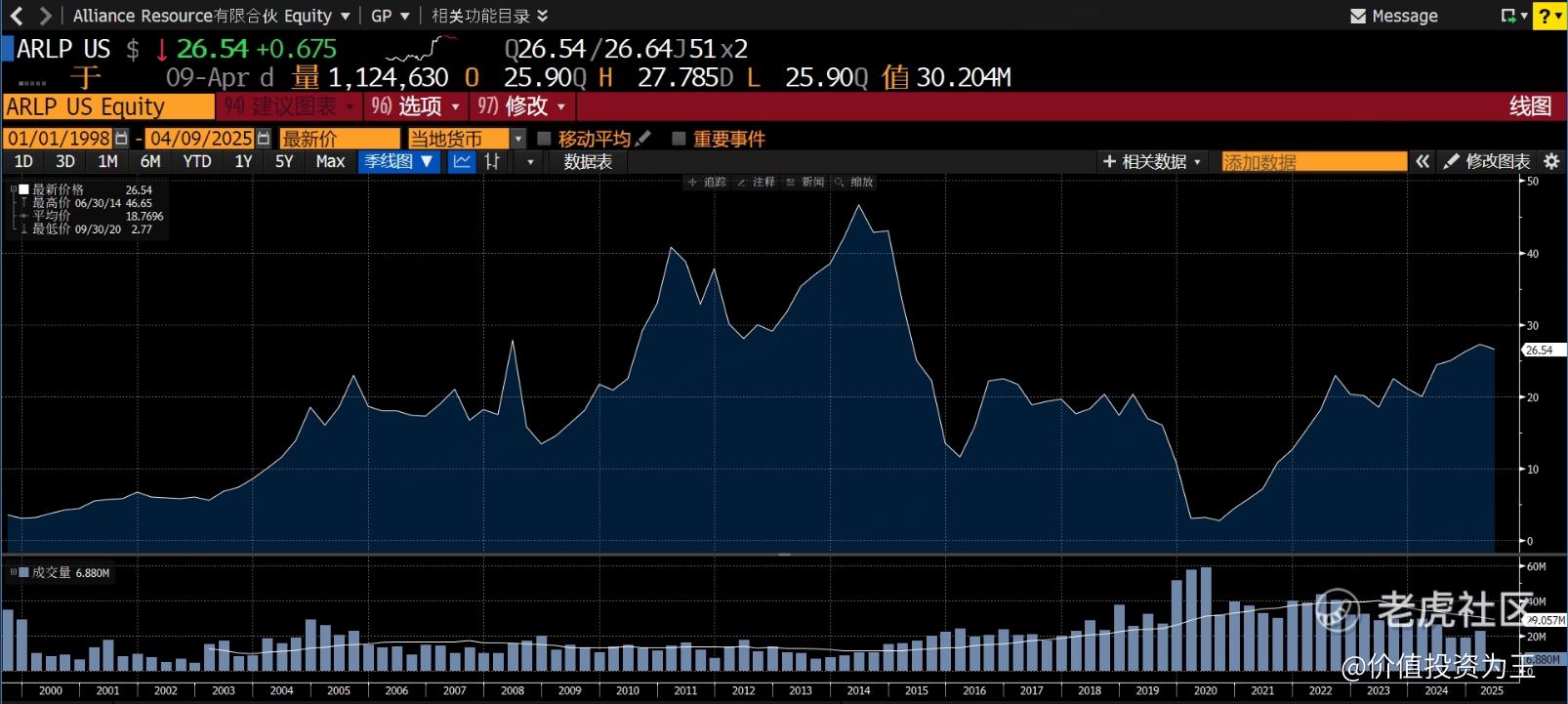 一般而言,产量提升较为困难,ARLP的股价变动主要受煤炭价格走势影响,如公司预计2025年的产量在3225-3425万短吨之间,较2024年3220万吨略有增长,最大幅度约6.4%: