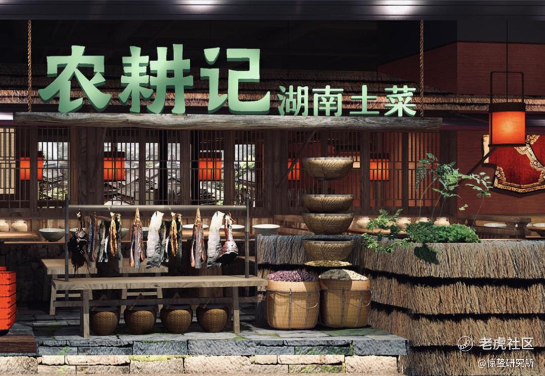 在借助场景营造氛围感方面,也不只有文和友一家。但2017年创立于深圳的湖南土菜品牌农耕记,则是从店内装潢到菜品设计,都在打造“土菜”形象。