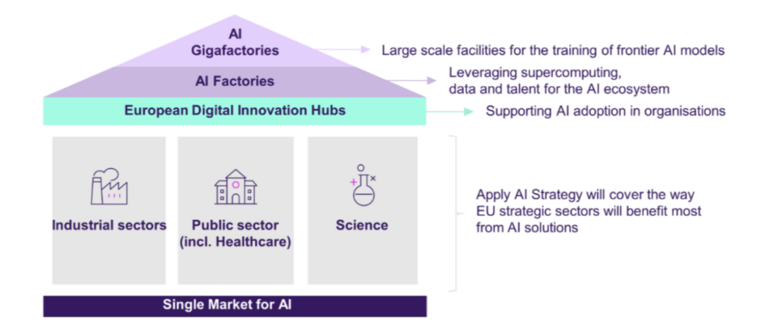 欧盟的战略注重硬件层面的算力基础设施建设,还强调软件层面的数据治理与跨领域应用,其核心目标是在确保数字主权的前提下,推动AI技术向制造业、医疗、能源等关键领域渗透。