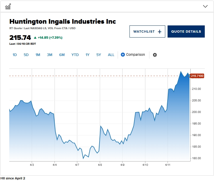 Bilson特别点名了造船企业Huntington Ingalls Industrie,称其值得投资者重点关注。该股3月份上涨了16%。