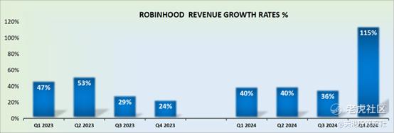 请注意,Robinhood在2024年第四季度实现了其首个10亿美元收入季度,并计划通过推出新功能(包括扩展其加密货币服务)实现更多增长。