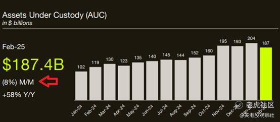 在2月份,托管资产同比减少了8%。这意味着,正如你可能预期的那样,随着市场下跌,托管资产也会减少。
