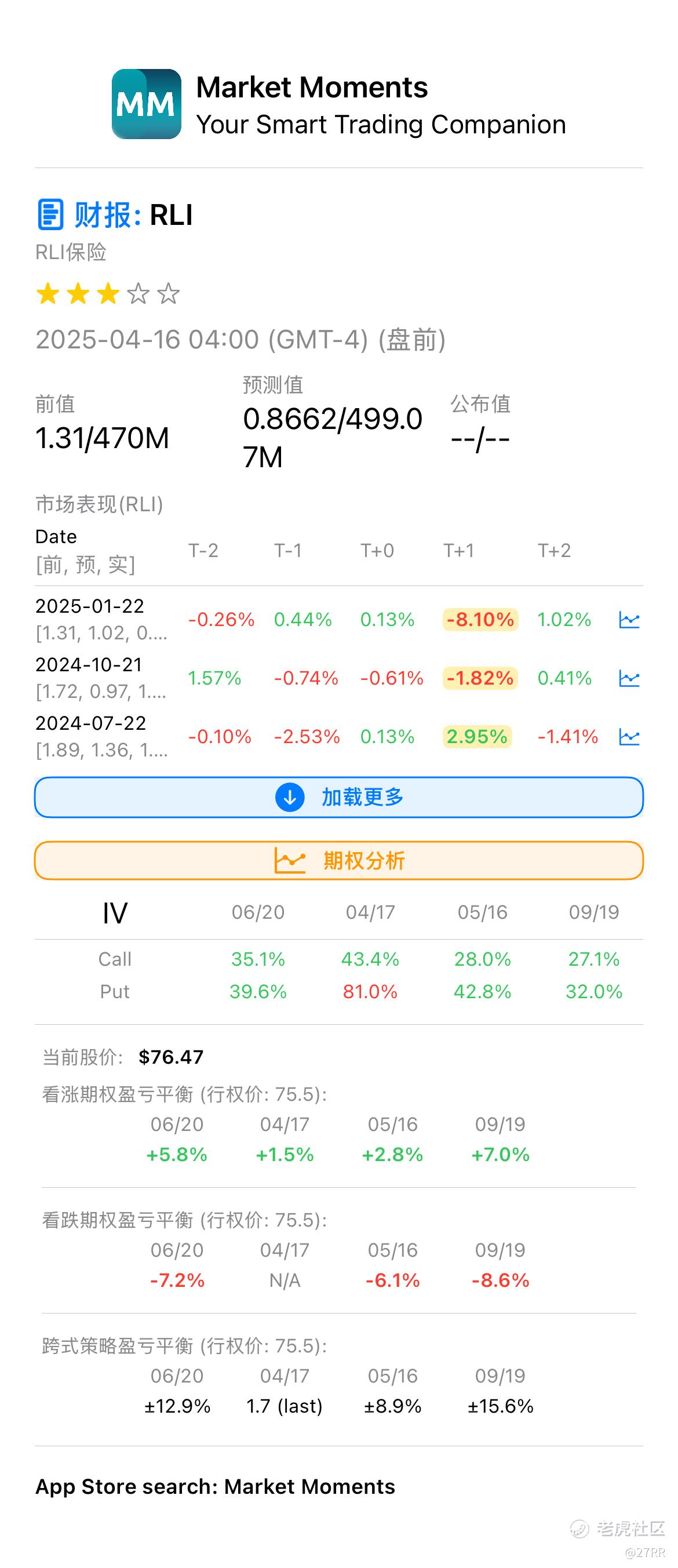 , 明天盘前发布财报,财报发布后波动通常较大,当前隐含波动率处于相对合理区间,或许可以考虑Straddle策略。