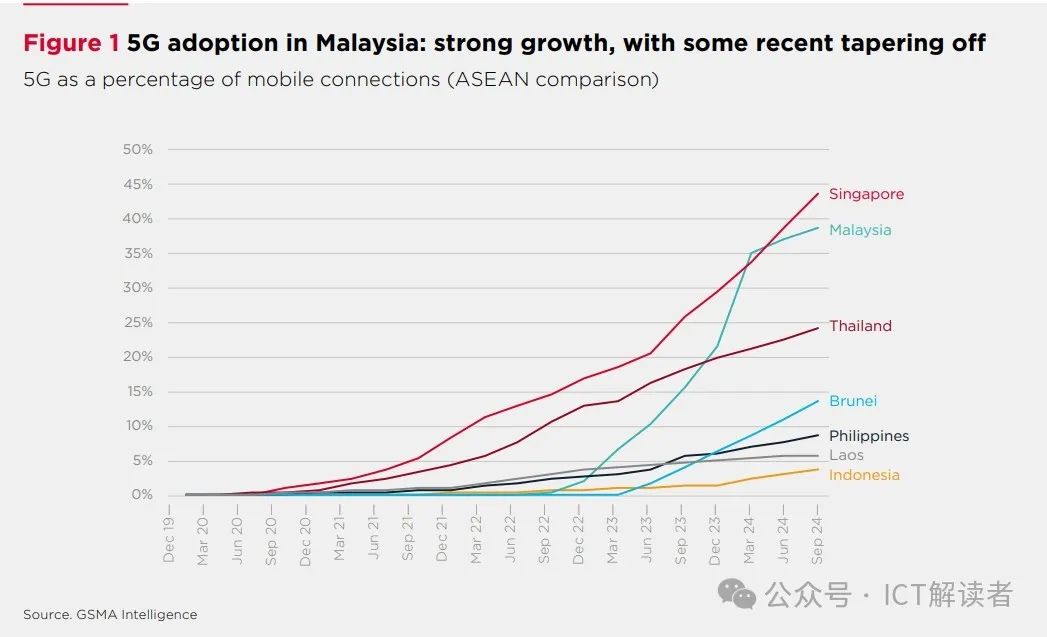 马来西亚的5G利用率已达到移动连接的40%,增长速度与新加坡相当,快于泰国和印度。这一数据表明,尽管起步较晚,但马来西亚在5G网络建设上已经取得了显著进展。然而,与韩国、日本和中国等亚洲领先国家相比,马来西亚的5G网络利用率仍有较大提升空间。