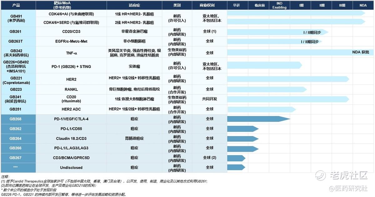 就嘉和生物而言,该公司主要聚焦潜在FIC(全球首创)和BIC(同类最优)创新管线,在肿瘤及自免领域拥有10多款产品组合,包括GB491(来罗西抗)、GB261、GB242(英夫利西单抗)、GB223、 GB241(利妥昔单抗)等。
