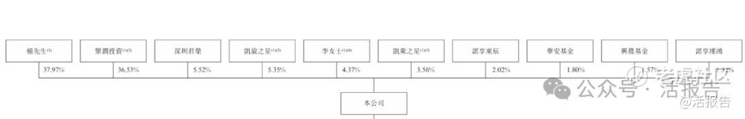 IPO前,溜溜果园在上市前的股东架构中,控股股东杨帆先生、李慧敏女士、聚润投资、凯旋之星和凯莱之星等,合计持股约87.77%。(杨帆先生持股为37.97%,李慧敏女士持股为4.37%,聚润投资持股为36.53%,凯旋之星持股为5.35%,凯莱之星持股为3.56%)。
