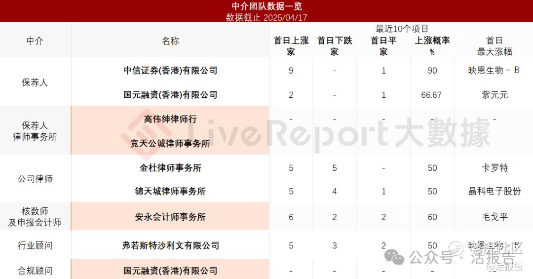 据LiveReport大数据统计,溜溜果园中介团队共计9家,其中保荐人2家,近10家保荐项目数据表现良好;公司律师共计2家,综合项目数据不尽如意。整体而言中介团队历史数据表现勉强。