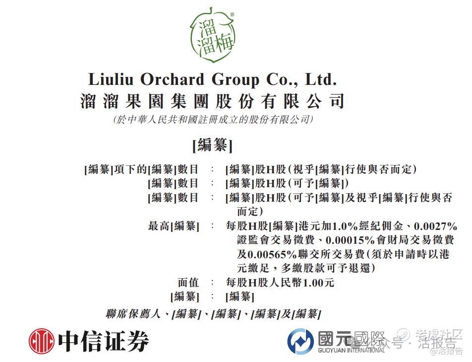 2025年4月16日,溜溜果园首次向港交所递交招股书,拟在香港主板上市,独家保荐人为中信证券、国元国际。