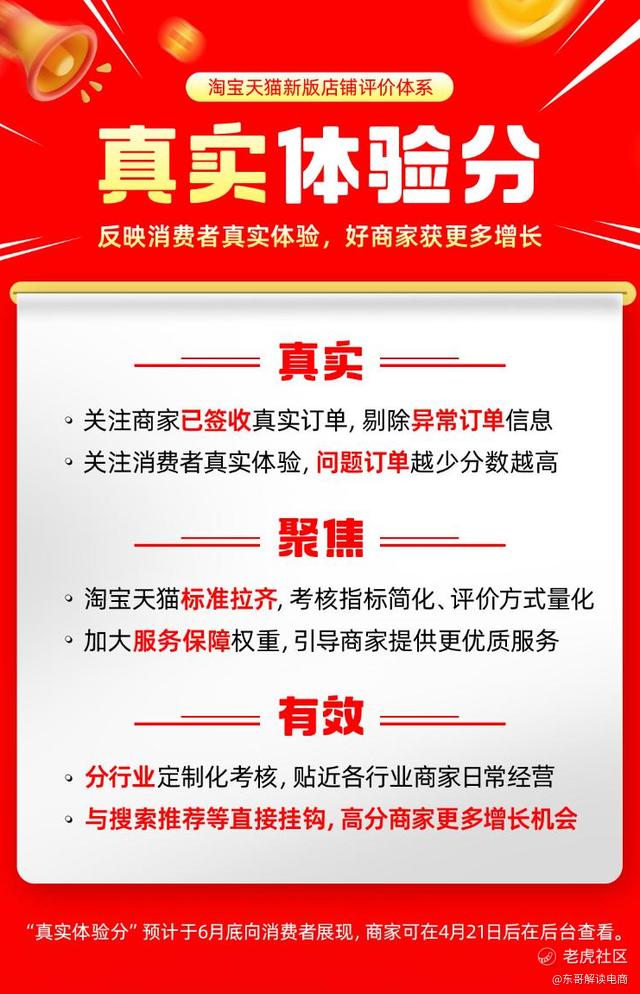 4月21日起,商家可在后台查看“真实体验分”。预计6月底,真实体验分将正式向消费者展现。真实体验分针对的是区分度不足、虚假评分、无法为消费者提供真实有效参考的问题。
