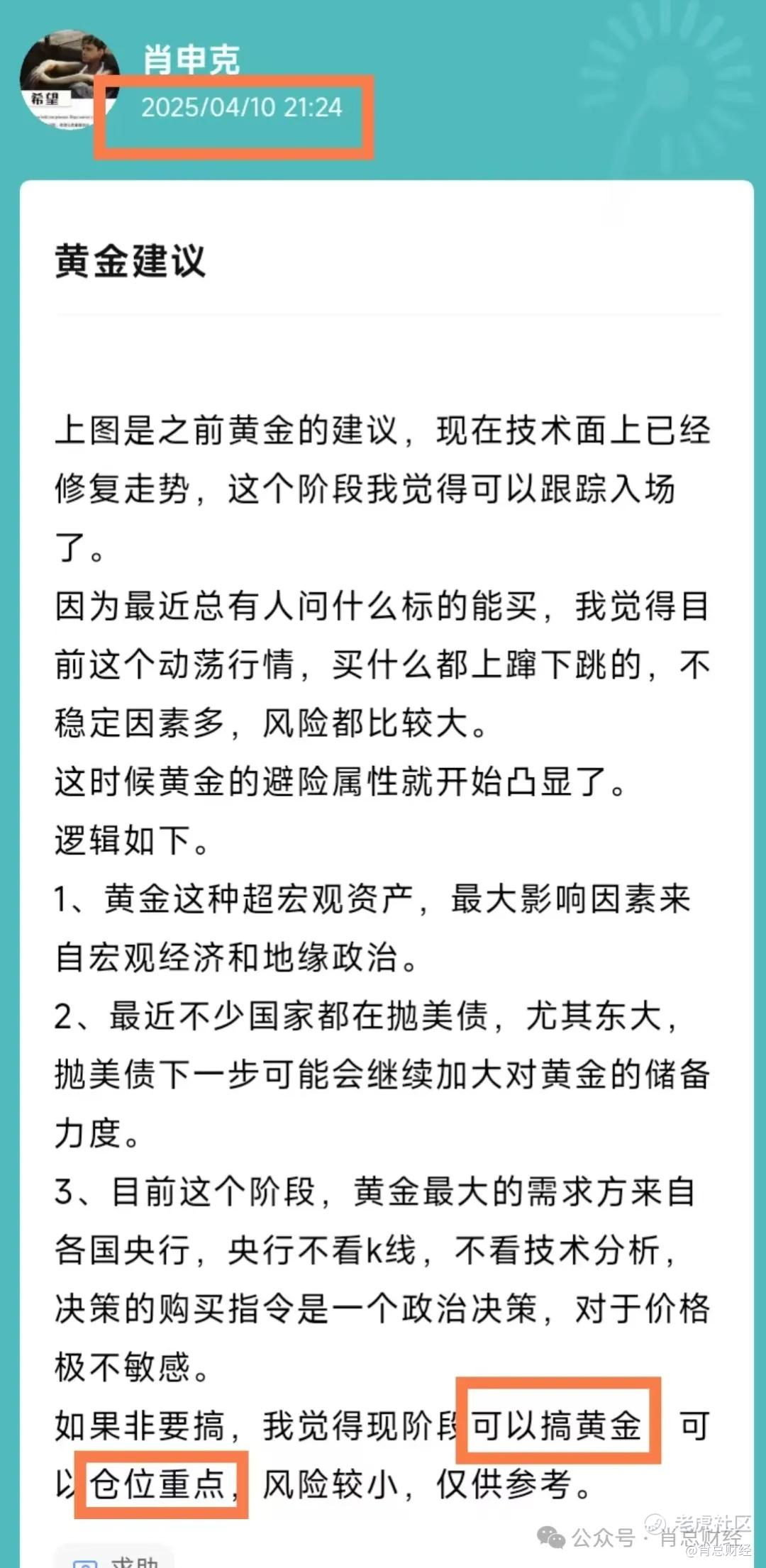 其实我觉得在黄金暴涨后才给出马后炮分析是没有价值的,在资产表现之前给出态度才能体现出价值。