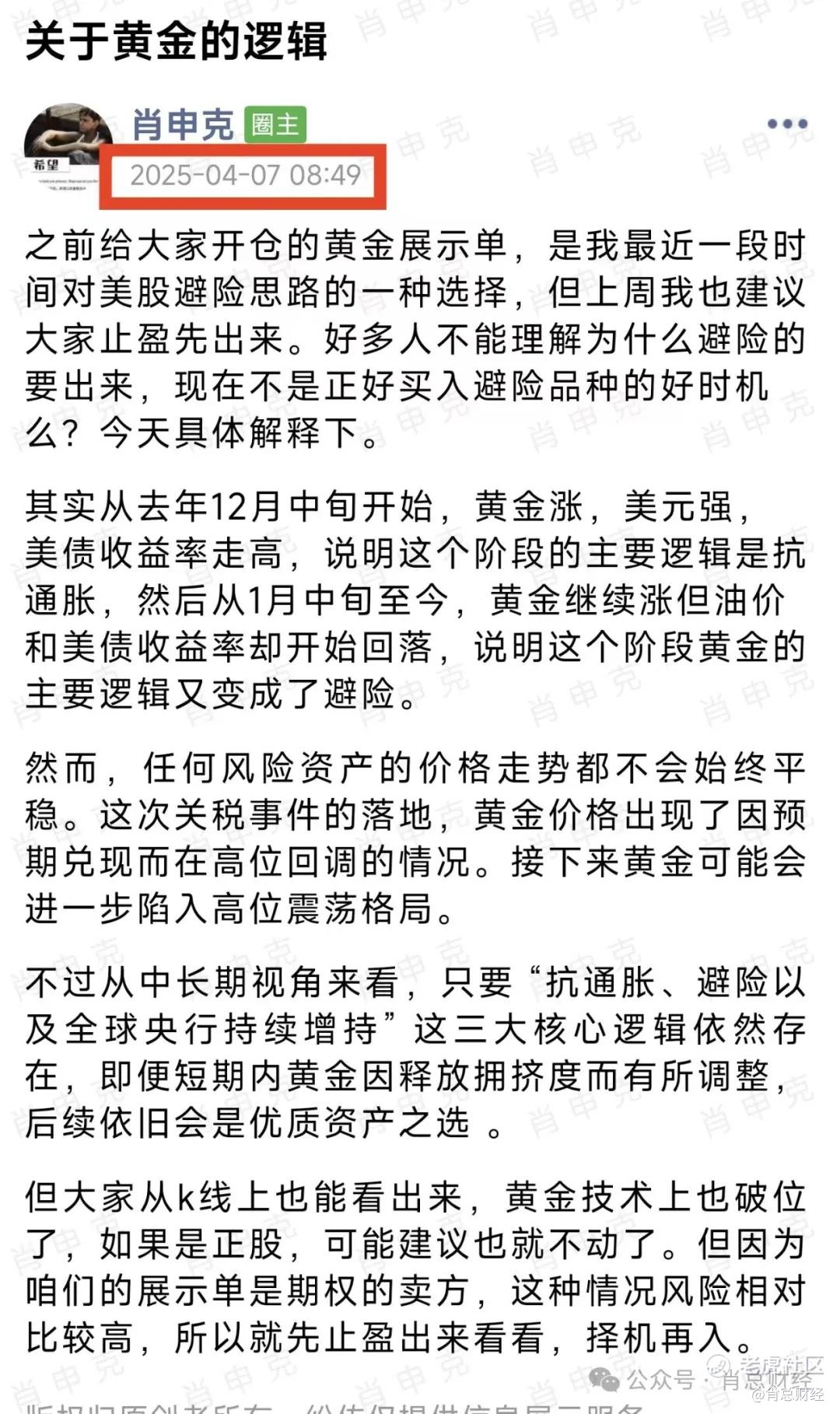 黄金新高后,昨晚又跟踪了篇文章。